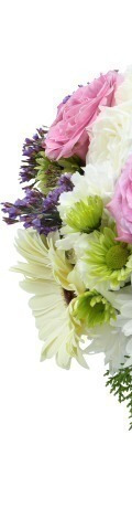 Celebrate a new arrival, a new job, or a new home with the Bundle of Joy Flower Bouquet. Beautifully arranged using on the freshest blooms, it includes 5 pink roses, 4 white carnations, 5 white roses, vibrant purple statice, and delicate ferns for just a hint of greenery. Elegantly presented and delivered with love, it is the perfect gift for Mother's Day, Easter, and birthday celebrations.