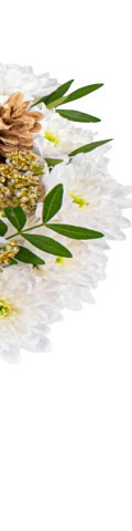 Our White Christmas Bouquet is a fabulously festive flower arrangement with white chrysanthemums, fresh-from-the-tree pinecones, seasonal greenery, and gorgeous gold embellishments for a season that sparkles. It is the perfect gift for friends and loved ones who are impossible to shop for and ideal for business partners who have helped your company thrive this year. This hand-tied Christmas flower arrangement is available with the wrapping of your choice and includes our Christmas flower delivery service. It’s a celebration of winter’s magic.